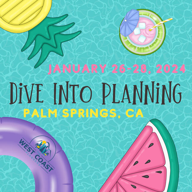 The West Coast Planners present Dive Into Planning🗓️Dates: January 26-28, 2024🗺️Location: Margaritaville Resort Palm Springs1600 North Indian Canyon DrivePalm Springs, California 92262🎟️ TICKET INFORMATION 🎟️